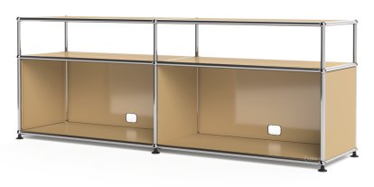 USM Haller Lowboard L mit Aufbau, individualisierbar, USM beige, Offen, Mit Kabeldurchlass unten mittig