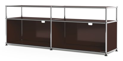 USM Haller Lowboard L mit Aufbau, individualisierbar, USM braun, Offen, Mit Kabeldurchlass oben mittig