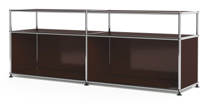 USM Haller Lowboard L mit Aufbau, individualisierbar, USM braun, Offen, Ohne Kabeldurchlass