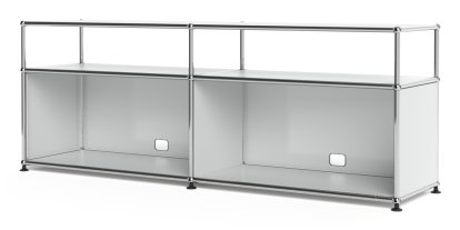 USM Haller Lowboard L mit Aufbau, individualisierbar, USM mattsilber, Offen, Mit Kabeldurchlass unten mittig