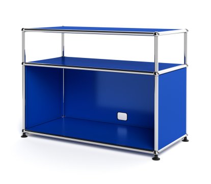 USM Haller Lowboard M mit Aufbau, individualisierbar, Enzianblau RAL 5010, Mit Klappe, Mit Kabeldurchlass unten mittig