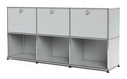 USM Haller Sideboard 50, individualisierbar, Lichtgrau RAL 7035, Mit 3 Klappen, Offen