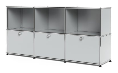 USM Haller Sideboard 50, individualisierbar, Lichtgrau RAL 7035, Offen, Mit 3 Klappen