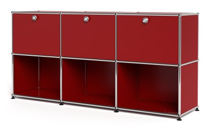 USM Haller Sideboard 50, individualisierbar, USM rubinrot, Mit 3 Klappen, Offen