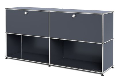USM Haller Sideboard L, individualisierbar, Anthrazitgrau RAL 7016, Offen, Mit 2 Klappen