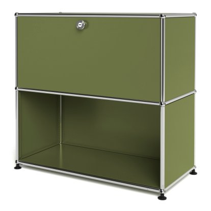 USM Haller Sideboard M, individualisierbar Olivgrün RAL 6003|Mit Klappe|Offen