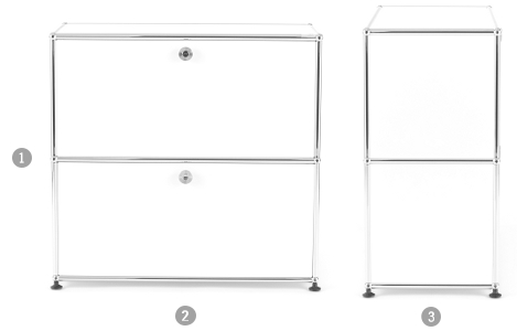 Alles ist möglich mit USM. Häufig ähneln sich allerdings die Anforderungen unserer Kunden, so dass wir in unseren Shop bereits eine Auswahl der gängigsten USM Haller Konfigurationen an Side- und Highboards bzw. Regalen anbieten. Unsere Standards sind in der Regel kurzfristig lieferbar. Selbstverständlich berücksichtigen wir gerne auch Ihre indivduellen Wünsche, wenn unsere Standards mal nicht passen.
