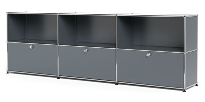 USM Haller Sideboard XL, individualisierbar, Anthrazitgrau RAL 7016, Offen, Mit 3 Klappen
