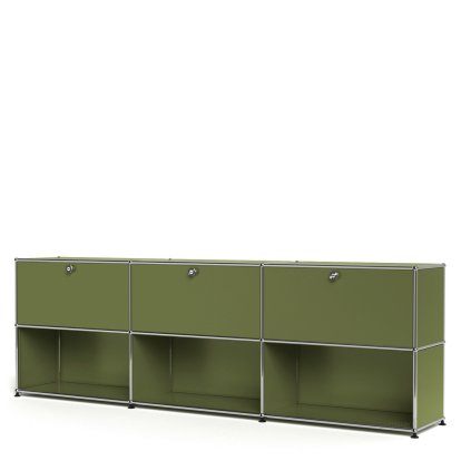 USM Haller Sideboard XL, individualisierbar Olivgrün RAL 6003|Mit 3 Klappen|Offen