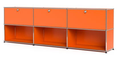 USM Haller Sideboard XL, individualisierbar Reinorange RAL 2004|Mit 3 Klappen|Offen