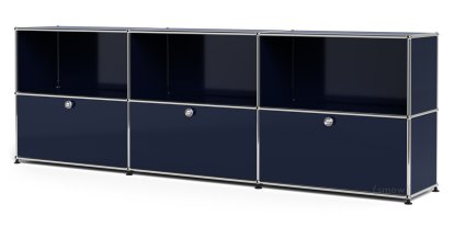 USM Haller Sideboard XL, individualisierbar Stahlblau RAL 5011|Offen|Mit 3 Klappen
