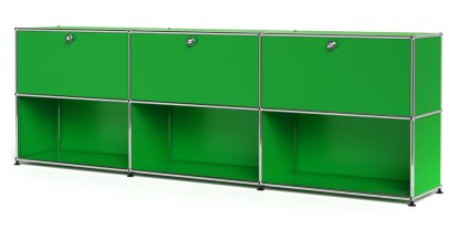 USM Haller Sideboard XL, individualisierbar, USM grün, Mit 3 Klappen, Offen