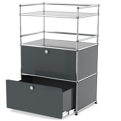 USM Haller Bar Highboard, Anthrazitgrau RAL 7016, Mit Klappe und Auszug (inkl. Einlegerahmen)