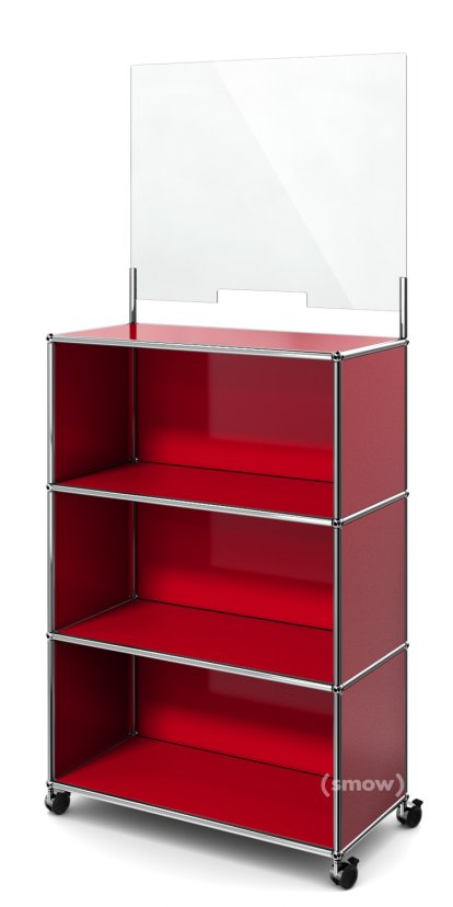 USM Haller Counter M mit Security Screen, USM rubinrot, Mit Rollen