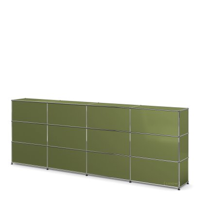 USM Haller Theke Typ 1, Olivgrün RAL 6003, 300 cm (4 Elemente), 35 cm