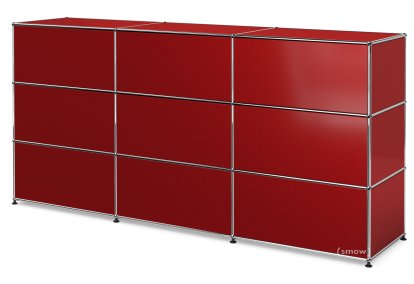 USM Haller Theke Typ 1 USM rubinrot|225 cm (3 Elemente)|50 cm