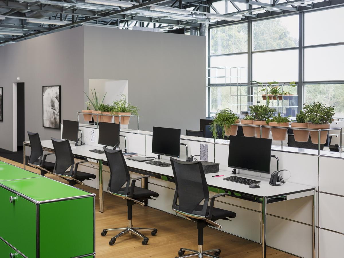 In der modernen Unternehmenskultur weiß man inzwischen, dass das Wohlbefinden der Beschäftigten für die Produktivität eines Unternehmens ein entscheidender Faktor ist. Grauer Büroalltag und starre Arbeitsstrukturen sind passé und deshalb setzen Start-ups und moderne Unternehmen auf lebendige, entspannte und flexible Bürolandschaften. Ein wichtiger Bestandteil sind hier Pflanzen. Die wirken sich nämlich erwiesenermaßen positiv auf unser Wohlbefinden aus. Sie fördern Stressabbau, Entspannung und gute Laune und fungieren als natürliche Luftbefeuchter und Luftfilter. Positive Effekte, die in den unterschiedlichsten Bereichen genutzt werden sollten. USM bietet jetzt ein einfaches und elegantes System zur Begrünung von USM Haller Möbeln, mit dem sich grüne Akzente in jede Inneneinrichtung integrieren lassen. Vor allem Orte mit einem Schwerpunkt im Servicebereich wie Cafés, Restaurants oder Hotels, aber auch Messestände oder Besprechungsräume gewinnen durch Pflanzen eine lebendige und wohnliche Note. Besucherinnen und Kunden, Kommunikation und Zusammenarbeit werden so nachhaltig positiv beeinflusst. Übrigens zeigt sich USM auch hier gewohnt flexibel: Die Pflanzenelemente können selbstverständlich auch in bereits bestehende USM Tresen, Regale und Sideboards eingebaut und auf Wunsch jederzeit wieder aus- oder umgebaut werden. Sie haben Fragen zu USM Pflanzenwelten? Kontaktieren Sie gern unser Serviceteam oder wenden Sie sich an unsere USM Expertinnen und Experten in den smow Stores.