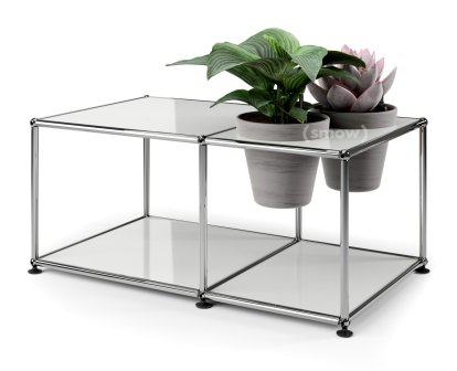 | Lieferumfang | 1 USM Haller Beistelltisch inkl. 2 Pflanztöpfen und Bewässerungsset (bestehend aus Topfeinsatz und Röhrchen mit Wasserstandsanzeiger). Die abgebildeten Pflanzen dienen als unverbindliches Anwendungsbeispiel und sind nicht Bestandteil des Lieferumfangs! |