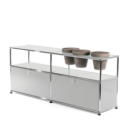 USM Haller Pflanzenwelten Sideboard, Lichtgrau RAL 7035, Mit 2 Klappen, Mit 3 Töpfen rechts, Basalt