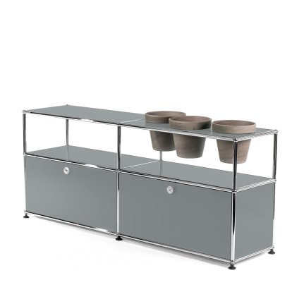 USM Haller Pflanzenwelten Sideboard, Mittelgrau RAL 7005, Mit 2 Klappen, Mit 3 Töpfen rechts, Basalt