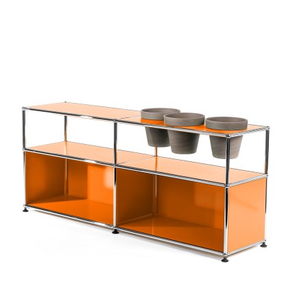 USM Haller Pflanzenwelten Sideboard, Reinorange RAL 2004, Offen, Mit 3 Töpfen rechts, Basalt