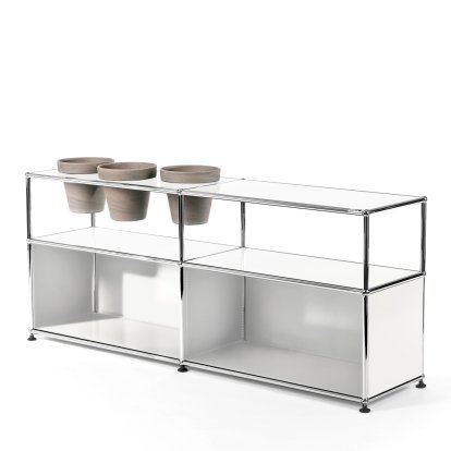 | Ausführungen | Wahlweise mit offenen Fächern unten oder 2 Klappen, mit 3 Töpfen rechts/links oder mit 6 Töpfen über die gesamte Horizontale sowie mit terrakotta- oder basaltfarbenen Pflanztöpfen Ebenso ohne Bepflanzungssystem als USM Haller Sideboard L mit Aufbau und vielen weiteren individuellen Konfigurationen erhältlich |