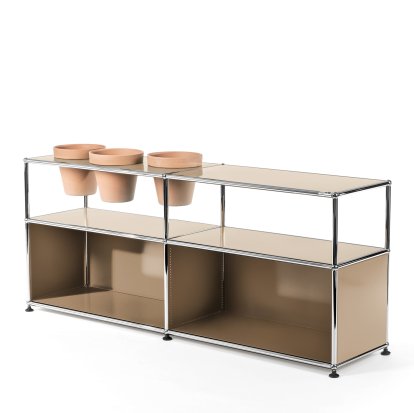 USM Haller Pflanzenwelten Sideboard, USM beige, Offen, Mit 3 Töpfen links, Terrakotta