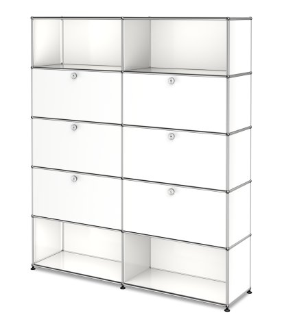 USM Haller Aktenregal L, individualisierbar Reinweiß RAL 9010|Mit 2 Klappen|Mit 2 Klappen|Mit 2 Klappen|Offen