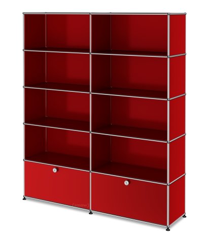 USM Haller Aktenregal L, individualisierbar, USM rubinrot, Mit 2 Klappen, Offen, Mit 2 Klappen, Mit 2 Auszügen