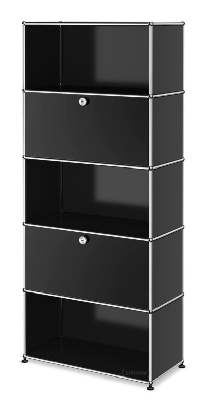 USM Haller Aktenregal M, individualisierbar, Graphitschwarz RAL 9011, Offen, Mit Klappe, Offen, Mit Klappe