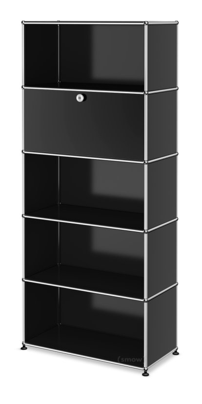 USM Haller Aktenregal M, individualisierbar, Graphitschwarz RAL 9011, Offen, Mit Klappe, Offen, Mit Klappe