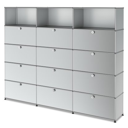 USM Haller Aktenregal XL, individualisierbar, Lichtgrau RAL 7035, Offen, Mit 3 Klappen, Offen, Offen