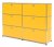 Nachdem im Jahr 1961 der USM Juniorchef Paul Schärer den Architekten Fritz Haller mit der Planung neuer Produktions- und Bürogebäude beauftragt hatte, suchte er nach einer passenden Lösung für die Inneneinrichtung. Seine Vorstellungen einer flexiblen Einrichtung, die auf gestalterische Hierarchien innerhalb des Unternehmens verzichten sollte, standen im direkten Zusammenhang mit dem damals neuen Konzept des Großraumbüros. So entwickelte Fritz Haller 1963 das USM Möbelsystem als Einrichtung für die von ihm entworfenen Gebäude. Sechs Jahre später, mit dem Auftrag zur Ausstattung der Pariser Rothschild Bank, ging USM Haller dann in Serienproduktion und revolutionierte in den Folgejahren die Bürowelt. Revolutionär war der minimalistische und modulare Charakter des Regalsystems: Bestehend aus drei Grundelementen lassen sich die Möbelmodule je nach Anforderung und entsprechend verschiedener Raumsituationen konzipieren. Da die selbst nachträglich wieder umgebaut und erweitert werden können, bleibt Inneneinrichtung mit den USM Möbelbausystemen immer im Prozess. Ein USM Haller Sideboard kann wahlweise mit offenen Fächern, Klapptüren und Ausziehtüren ausgestattet und in seinen Dimensionen, z.B. als Highboard, angepasst werden.