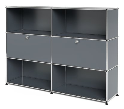 USM Haller Highboard L, individualisierbar, Anthrazitgrau RAL 7016, Offen, Mit 2 Klappen, Mit 2 Klappen