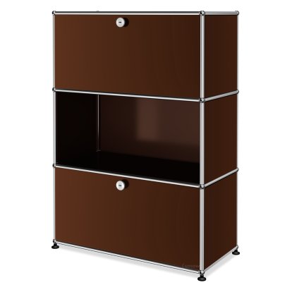 USM Haller Highboard M, individualisierbar, USM braun, Mit Klappe, Offen, Mit Klappe