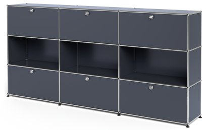 USM Haller Highboard XL, individualisierbar, Anthrazitgrau RAL 7016, Offen, Mit 3 Klappen, Mit 3 Klappen