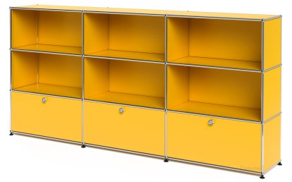 USM Haller Highboard XL, individualisierbar Goldgelb RAL 1004|Offen|Offen|Mit 3 Auszügen