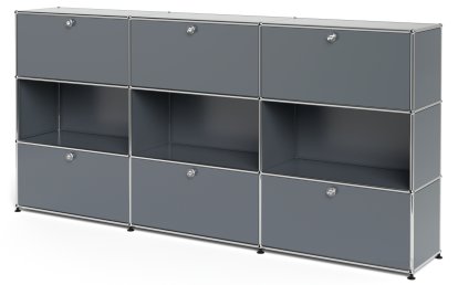 USM Haller Highboard XL, individualisierbar, Anthrazitgrau RAL 7016, Offen, Mit 3 Klappen, Mit 3 Klappen