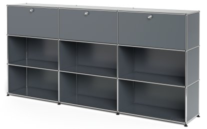USM Haller Highboard XL, individualisierbar, Anthrazitgrau RAL 7016, Offen, Mit 3 Klappen, Mit 3 Klappen
