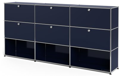 USM Haller Highboard XL, individualisierbar Stahlblau RAL 5011|Mit 3 Klappen|Mit 3 Klappen|Offen
