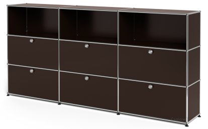 USM Haller Highboard XL, individualisierbar, USM braun, Offen, Mit 3 Klappen, Mit 3 Klappen
