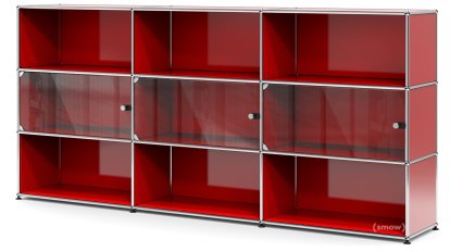 USM Haller Highboard XL mit 3 Glastüren, ohne Schloss, USM rubinrot
