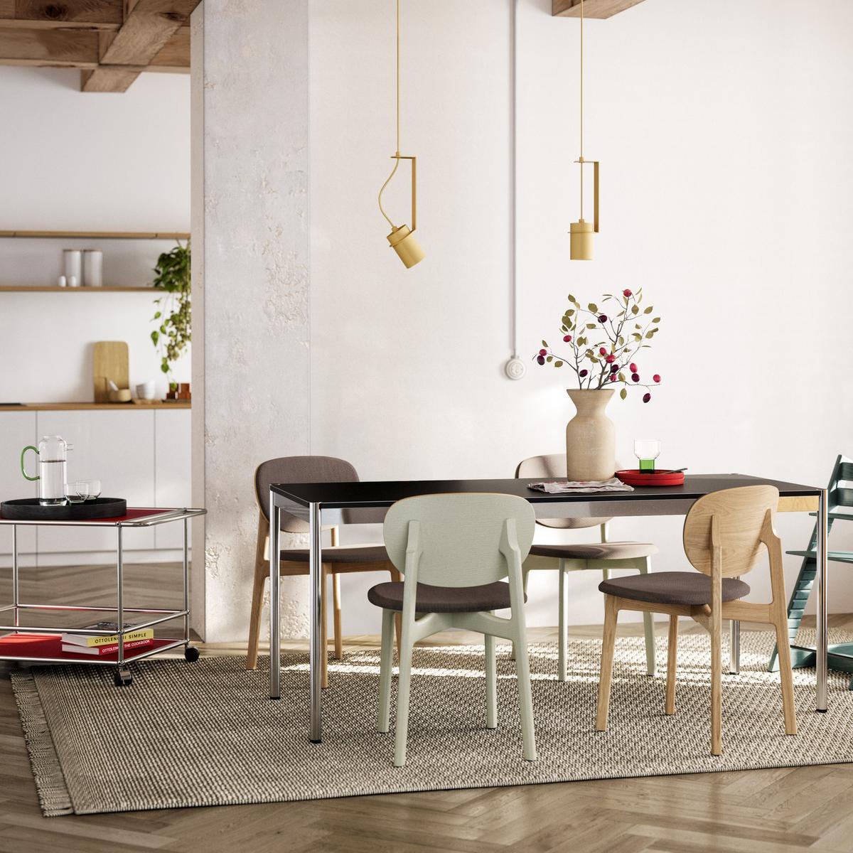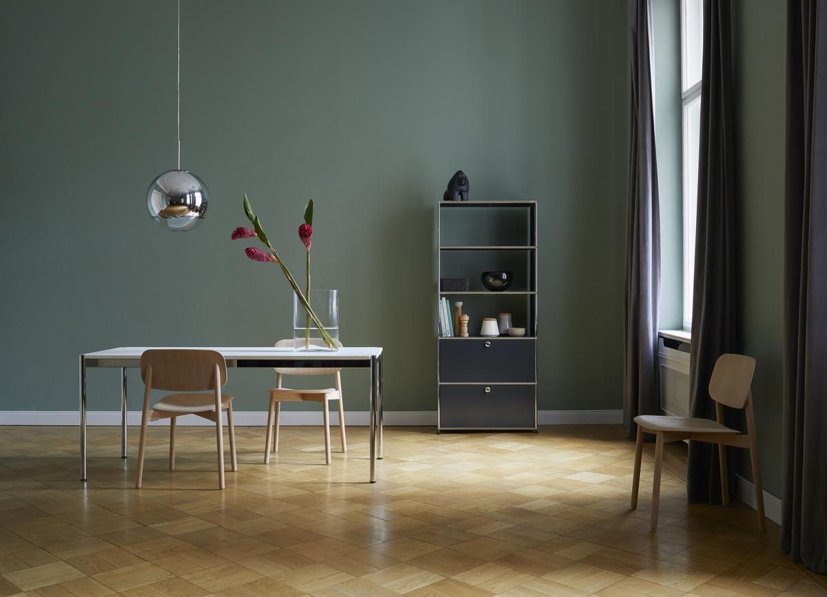 Typisch für das USM Haller Möbelbausystem, zeichnen sich die USM Haller Tische durch eine klare, reduzierte Form aus, wodurch sie sich perfekt in jeden Wohn- oder Arbeitsbereich einfügen und zeitlos modern bleiben. Die USM Haller Tischplatten sind je nach Bedarf in verschiedenen Holzarten, in Linoleum, Kunstharz, in pulverbeschichteten MDF Platten sowie aus klarem oder farbig lackiertem Glas erhältlich. Auch verschiedenstes Zubehör kann ganz den individuellen Anforderungen entsprechend gewählt werden. Durch sein schlichtes Design und die maßgeschneiderte Konfigurierung können USM Tische sowohl als Konferenz-, Schreib- als auch als Esstische eingesetzt werden. Darüber hinaus sind inzwischen USM Haller Couchtische und USM Haller Beistelltische erhältlich. Erst 2014 wurde das USM Haller Tischsortiment außerdem um die in ihrer Funktion ausgefeilten Tische Plus, Access und Advanced ergänzt, sodass endgültig keine Wünsche mehr offenbleiben.