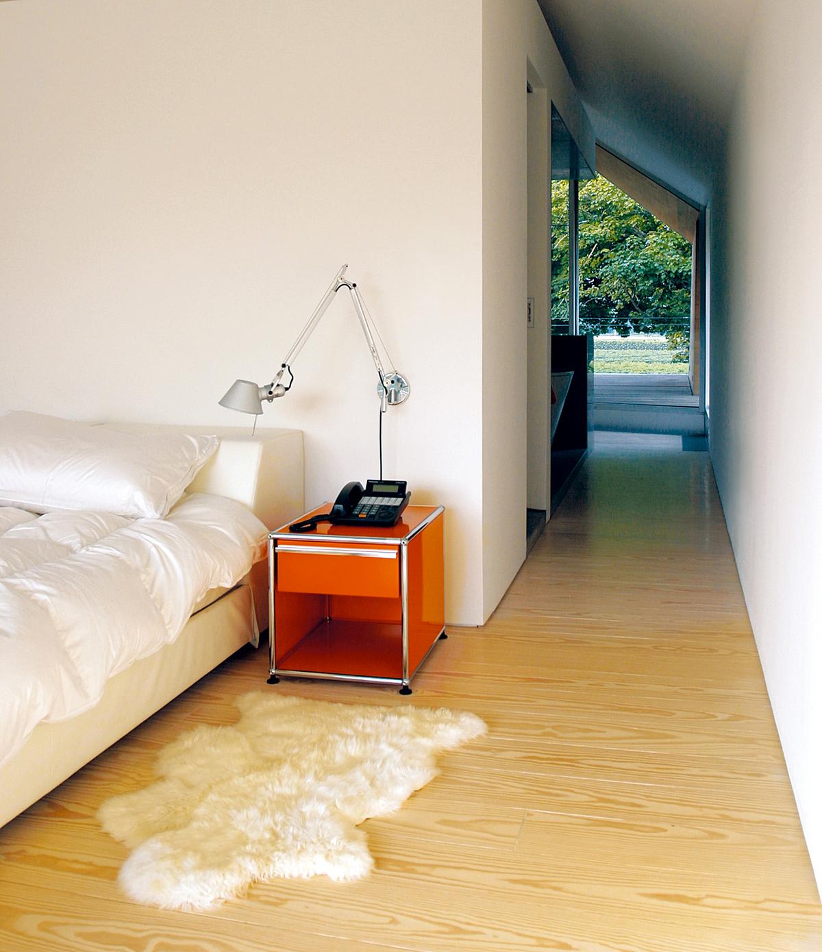 Ursprünglich wurden sie als modulares Büromöbel konzipiert, inzwischen werden sie aber auch als Beistell- beziehungsweise Nachttische eingesetzt und sind hierbei gewohnt vielfältig konfigurierbar. Raffiniert den individuellen Bedürfnissen angepasst und gleichzeitig klassisch-schlicht, können die zeitlosen Möbel universell eingesetzt werden. Die USM Haller Beistelltische bestehen aus verchromtem Stahl und verchromten Messingkugeln, ihre Tablare wiederum aus pulverbeschichtetem Metall oder Glas, welches klar oder lackiert erworben werden kann. Erhältlich sind die beliebig erweiterbaren Möbel in den 14 USM Standardfarben und verfügen je nach Ausführung über Schubladen, Klapptüren oder auch optionale Glas-Zwischentablare und erfüllen so jeden Wunsch, den man an ein Beistellmöbel haben könnte – im Wohn- oder Arbeitsbereich. Darüber hinaus gibt es noch einen USM Haller Couchtisch, der in drei Größen und verschiedensten Oberflächen jeden Wohn- oder Empfangsbereich aufwertet. Als Oberfläche kann Glas, Kunstharz, Granit, MDF, Holzfurnier oder Linoleum gewählt werden und bei der Farbauswahl sind nahezu keine Grenzen gesetzt.