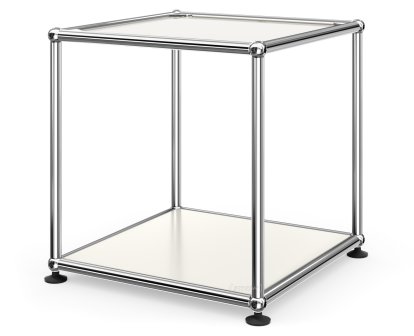 USM Haller Beistelltisch 35 Oben lackierter Glaseinsatz, unten Metall|Reinweiß RAL 9010