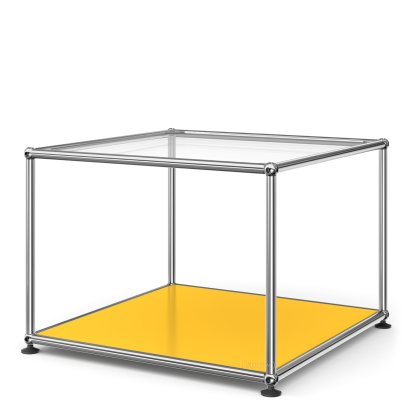USM Haller Beistelltisch 50 Oben Glas, unten Metall|Goldgelb RAL 1004