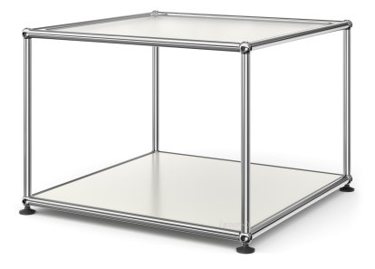 USM Haller Beistelltisch 50 Oben lackierter Glaseinsatz, unten Metall|Reinweiß RAL 9010