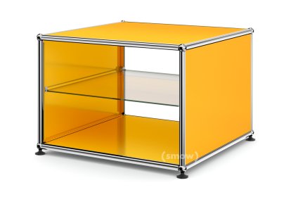 USM Haller Beistelltisch mit Seitenwänden 50 cm|mit Glas-Zwischentablar|Goldgelb RAL 1004