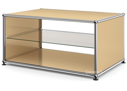 USM Haller Beistelltisch mit Seitenwänden 75 cm|mit Glas-Zwischentablar|USM beige