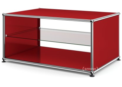 USM Haller Beistelltisch mit Seitenwänden 75 cm|mit Glas-Zwischentablar|USM rubinrot